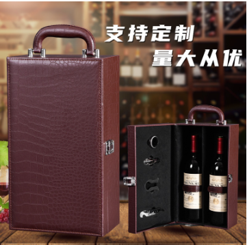 Set quà tặng gồm hộp đựng chai rượu vang, bộ dụng cụ mở rượu.
