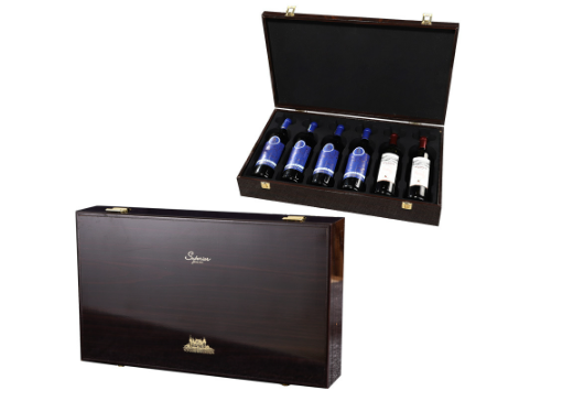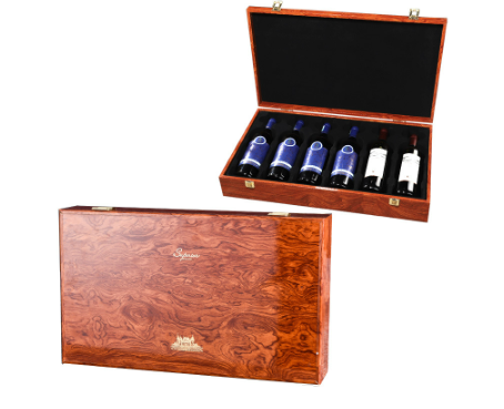 Có dây cố định chai rượu tại mỗi ngăn. Hộp rượu vang được thiết kế cổ điển tinh tế, tăng thêm sự lịch lãm cho quà tặng rượu vang.